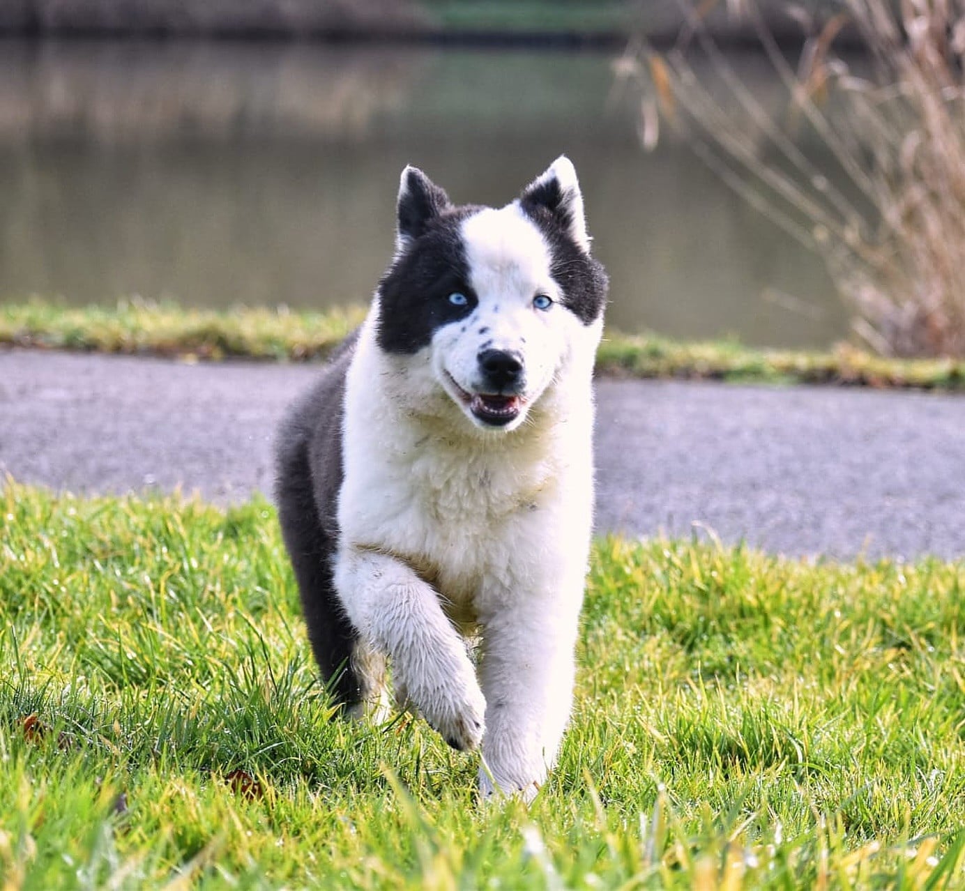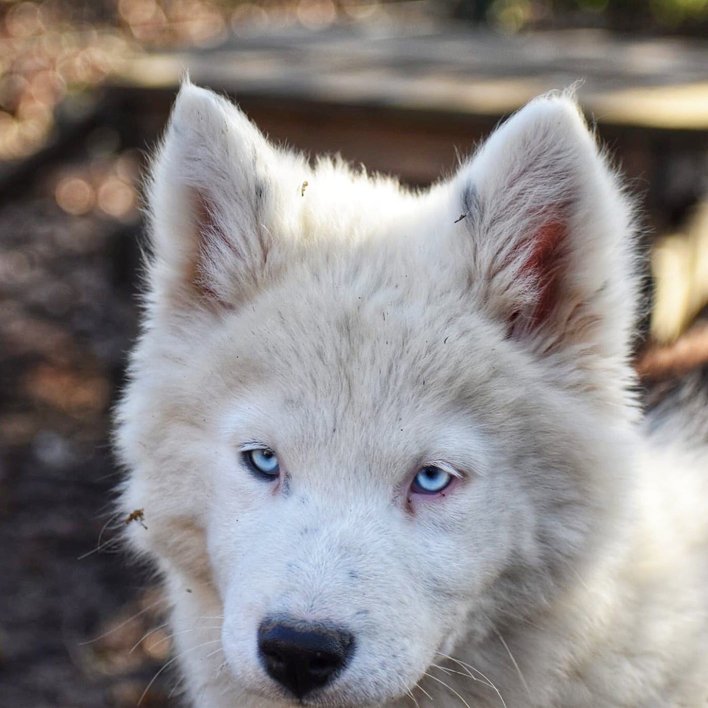 Pandora est une femelle, noir et blanche aux yeux bleu, entendante et en pleine santé.